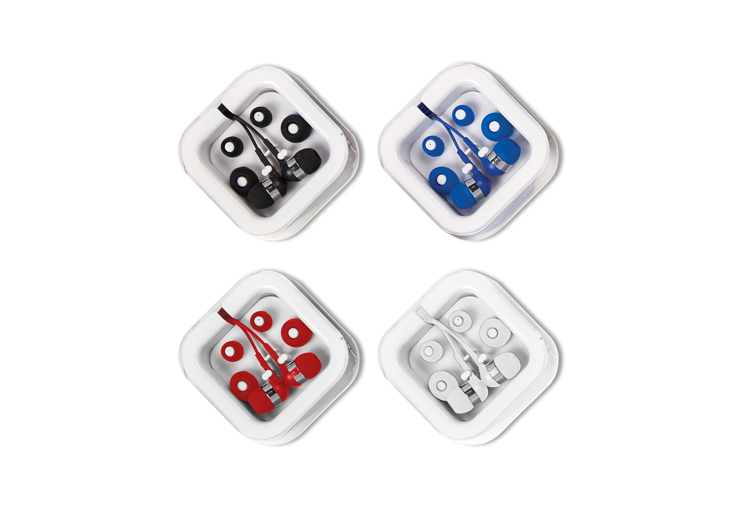Music lovers are in for a treat for this promotional product. This set of earbuds is available in different sizes to make listening more pleasurable. It is available in black, red, white and blue. |