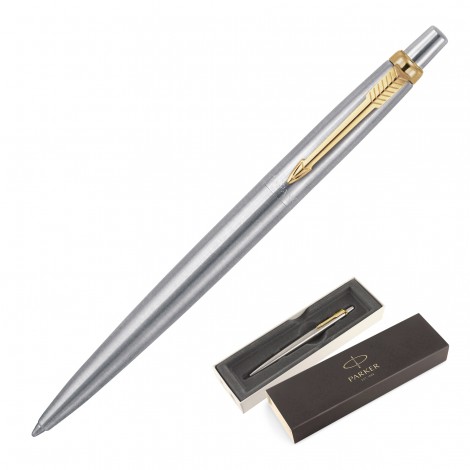 Whether pad printed or engraved (silver finish), the Parker Jotter Ballpoint Pen is a classic. Your logo can be placed on cap or upper barrel by either method and the blue ink is provided by a push action, retractable ballpoint.