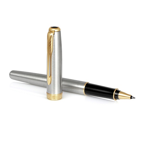 Stunning in stainless steel finish with elegant gold trim, the Parker Sonnet Rollerball Pen offers the smoothness of rollerball blue ink. Parker pens can be printed or engraved (silver finish) on cap or upper barrel providing great options for your logo.