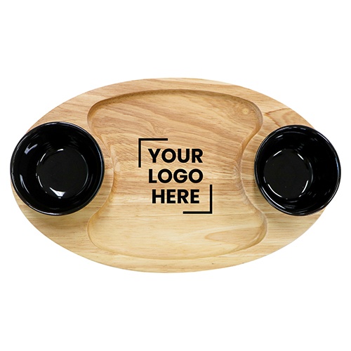 Tapas gift set with rubber wood board, 2 black ceramic bowls and 4 stainless steel tapas forks. Board size: 325mm H x 195mm W. Supplied in white luxury gift box.